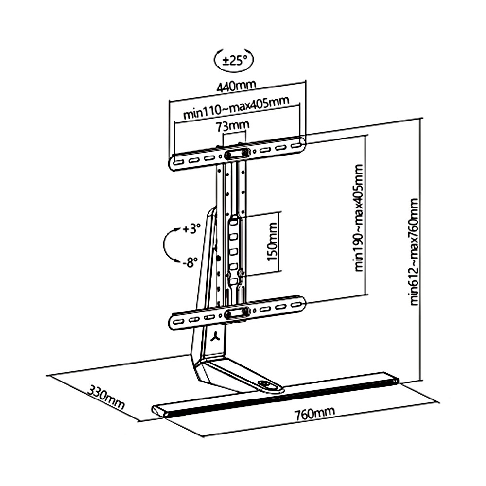 Wszechstronne zastosowanie: Ten stojakowy uchwyt przeznaczony jest do monitorów od 32" do 55", z możliwością montażu także większych ekranów, o ile nie przekraczają maksymalnego udźwigu 40 kg i spełniają standard VESA.