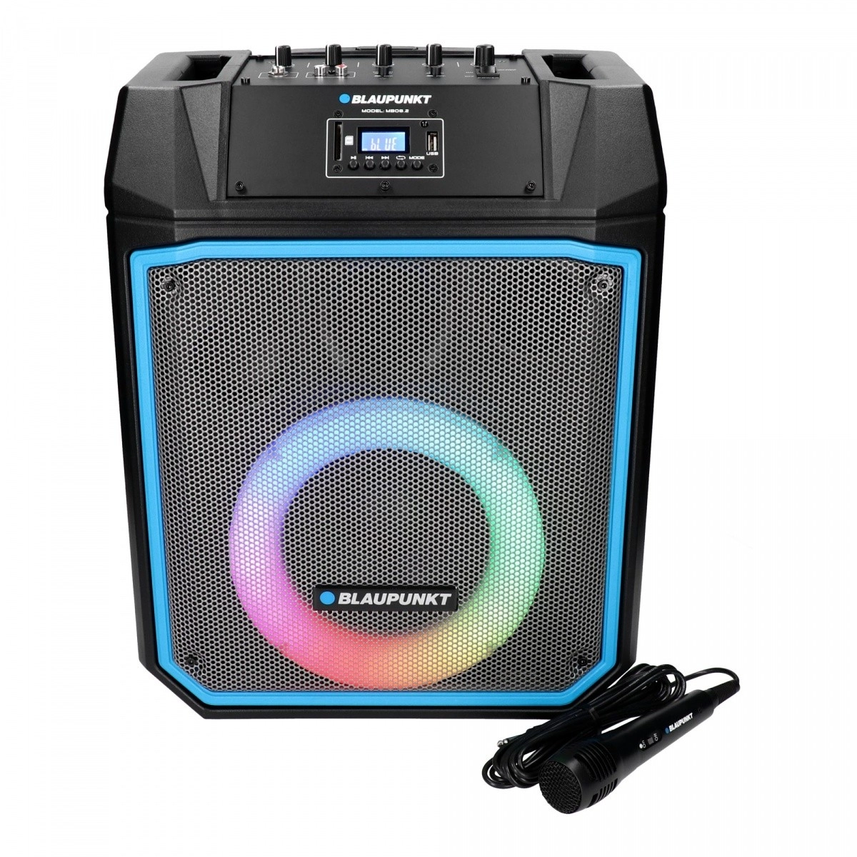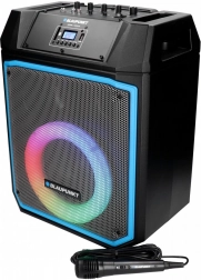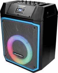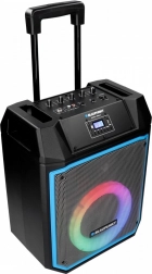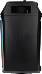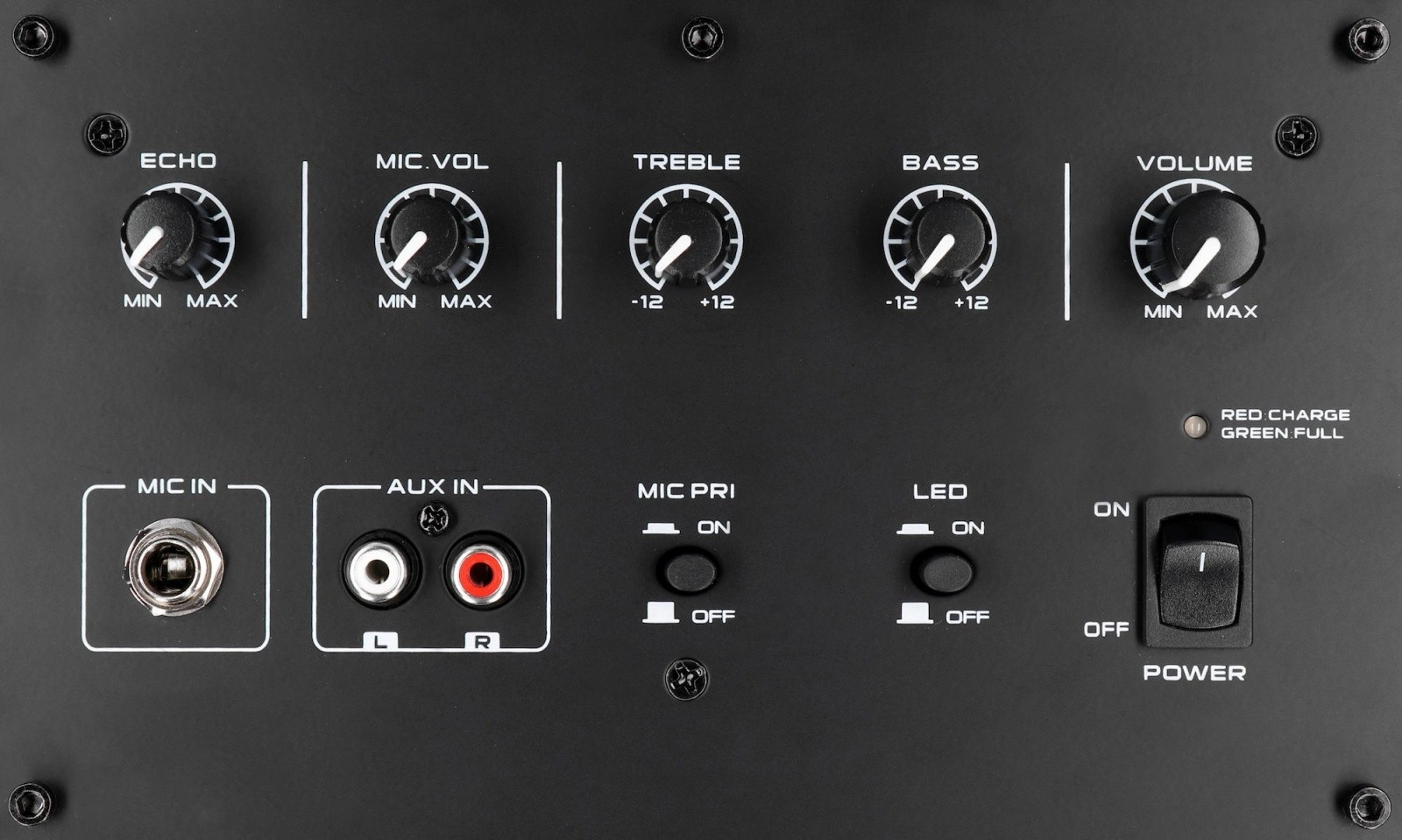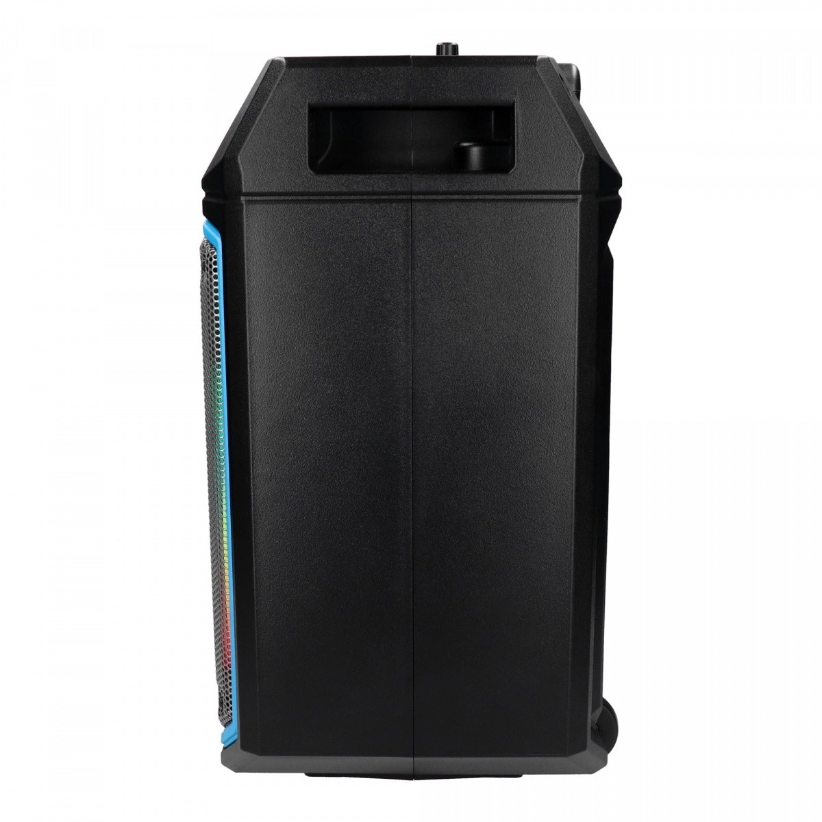 Wygodę zapewniają pilot zdalnego sterowania oraz teleskopowe rączki z kółkami ułatwiającymi przemieszczanie. Wbudowany mikrofon do karaoke i wielokolorowy panel LED nadadzą Twojej imprezie właściwy klimat.