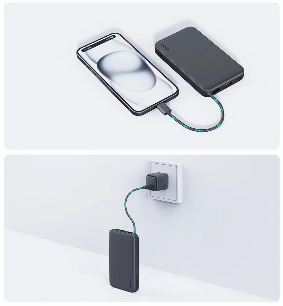 Powerbank Aukey Spark Sling oferuje pojemność 10000mAh oraz szybkie ładowanie do 22,5W z możliwością jednoczesnego ładowania nawet trzech urządzeń.