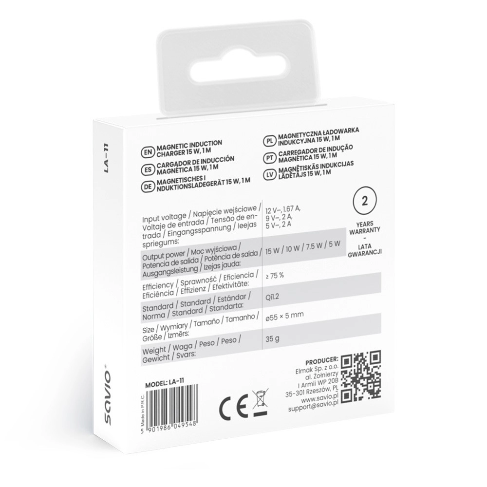 Kompatybilność z Qi i MagSafe: Dzięki wykorzystaniu standardu Qi 1.2, ładowarka Savio LA-11 łatwo obsługuje bezprzewodowe ładowanie indukcyjne. Wbudowany system magnesów jest idealny dla urządzeń z funkcją MagSafe, zapewniając stabilne i precyzyjne połączenie.