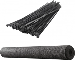 Siatka jest również bardzo przyjazna w użytkowaniu dzięki praktycznemu nawinięciu na solidną kartonową rolkę, co ułatwia jej rozwijanie i montaż. W zestawie znajduje się 60 opasek zaciskowych, które umożliwiają szybkie i stabilne przymocowanie siatki do wybranej powierzchni.