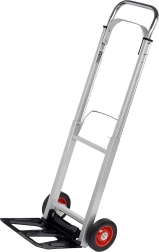 Wózek wyposażony jest w teleskopowy uchwyt, składaną platformę oraz system automatycznego blokowania, co zapewnia szybkie przygotowanie do pracy i kompaktowe przechowywanie. Całość uzupełniają wytrzymałe gumowe koła na stalowych trzpieniach, osadzone na łożyskach, które nie uszkadzają powierzchni i gwarantują płynne prowadzenie.