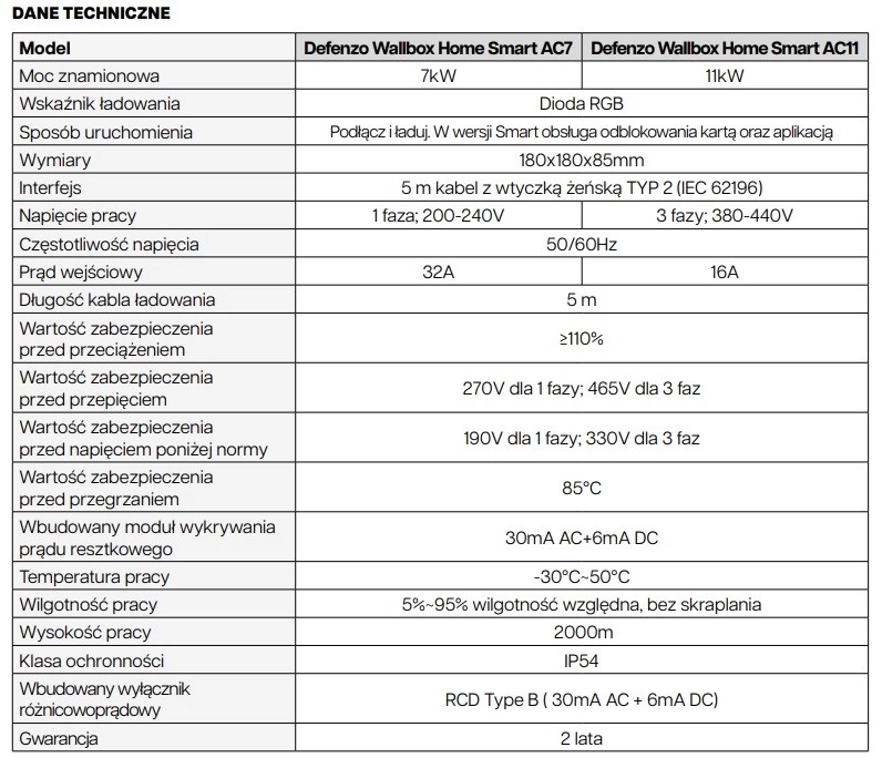 Na bezpieczeństwo kładzie się szczególny nacisk, a urządzenie zawiera inteligentny system zabezpieczeń przed różnymi problemami elektrycznymi, takimi jak przepięcia, przeciążenia czy upływy prądu. Szybki i łatwy montaż umożliwia kabel przyłączeniowy z wtykiem CEE i zintegrowany kabel ładujący typu 2 z wtykiem IEC 62196.