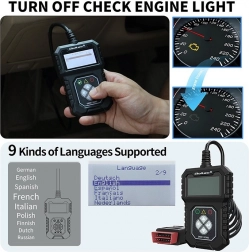 Dzięki temu urządzeniu możesz szybko sprawdzić i rozwiązać problemy, unikając drogiej diagnostyki w serwisie. Tester zapewnia dostęp do informacji o pojeździe, takich jak VIN, identyfikacja kalibracji (ID) i numer weryfikacyjny kalibracji (CVN).