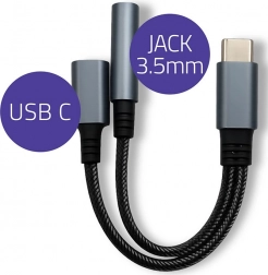 Ten praktyczny adapter USB-C 2w1 oferuje znakomitą jakość dźwięku dla smartfonów, tabletów i laptopów pozbawionych złącza 3,5 mm jack. Łączy technologię DAC dla czystego dźwięku Hi‑Fi oraz wspiera szybkie ładowanie do 15 W.