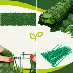 Łatwość montażu to jedna z głównych zalet tego produktu. Do szybkiego i prostego mocowania paneli nie potrzebujesz specjalnych narzędzi – wystarczą opaski zaciskowe lub kilka wkrętów. Dodatkowo jest łatwy w utrzymaniu – nie wymaga podlewania ani przycinania.