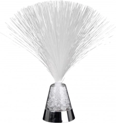 Delikatne i równomierne światło tworzy przyjemną atmosferę relaksu i spokoju. Lampa jest osadzona na stabilnej podstawie z przezroczystym wypełnieniem imitującym lodowe kryształy, uzupełniona eleganckim chromowanym wykończeniem. Elastyczne włókna optyczne rozpościerają się wachlarzowato, a ich końce delikatnie mienią się różnymi kolorami.