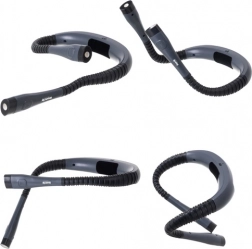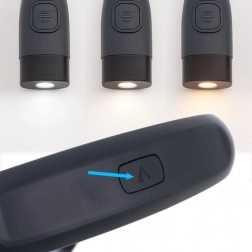- Wydajne oświetlenie: Lampka ma dwa elastyczne ramiona z diodami LED, które zapewniają wystarczająco mocne, ale nieoślepiające światło bezpośrednio na książkę.