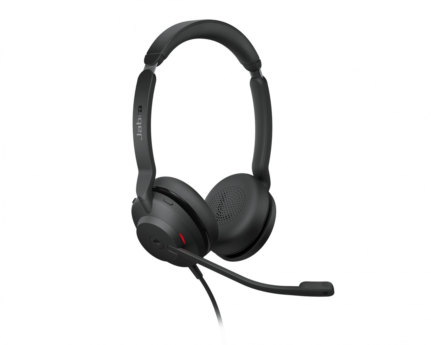 Lekkie i przenośne słuchawki Jabra Evolve2 30 SE zapewniają wygodę i wysoką jakość dźwięku dla efektywnej pracy w dowolnym miejscu.