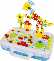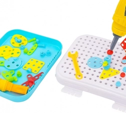 Kreatywna mozaika nie nudzi dzięki możliwości budowy konstrukcji 3D z aż 196 różnymi elementami, które rozwijają dziecięcą kreatywność przy każdej nowej kompozycji. Bezpieczna wiertarka dla dzieci obraca się tylko w jednym kierunku, z dostosowaną prędkością, co zapewnia bezpieczeństwo podczas zabawy.