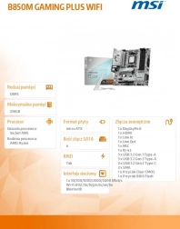 Płyta główna B850M Gaming Plus Wifi AM5 została zaprojektowana dla graczy poszukujących kompletnego doświadczenia z rozszerzoną łącznością i najwyższej klasy rozwiązaniami Wi‑Fi, w tym najnowszą technologią Wi‑Fi 7, siecią LAN 5G oraz PCIe 5.0.