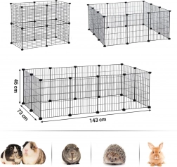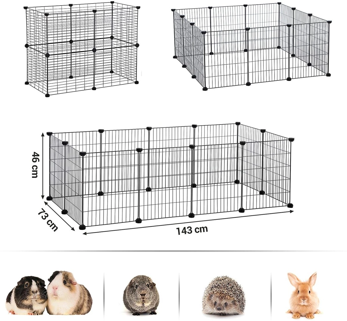 Modułowy wybieg to doskonałe rozwiązanie dla właścicieli zwierząt domowych, którzy chcą zapewnić swoim pupilom bezpieczną i zamkniętą przestrzeń w domu. Konstrukcja z metalowej siatki z oczkami o średnicy 2,5 cm zapewnia bezpieczeństwo i dobrą cyrkulację powietrza. Nadaje się dla chomików, świnek morskich, jeży i królików miniaturowych. Stwórz przytulne miejsce, które Twój pupil pokocha.