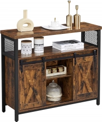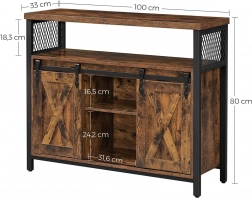 Ta rustykalna szafka z regulowanymi półkami i przesuwnymi drzwiami w stylu stodoły jest idealna do każdego wnętrza. Doskonale wpasuje się do salonu, sypialni lub przedpokoju.