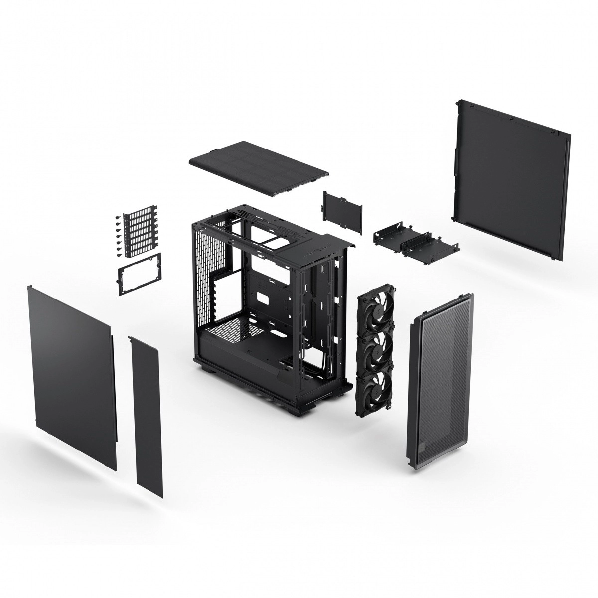 Obudowa Epoch Black Solid została zaprojektowana dla maksymalnej wydajności przepływu powietrza dzięki przedniemu panelowi z siatki oraz trzem wydajnym wentylatorom Momentum 12. Umożliwia instalację karty graficznej o długości do 372 mm i jest kompatybilna z chłodnicami o długości do 360 mm.
