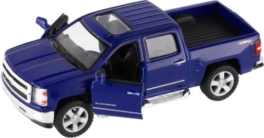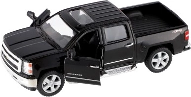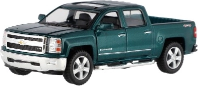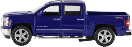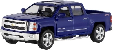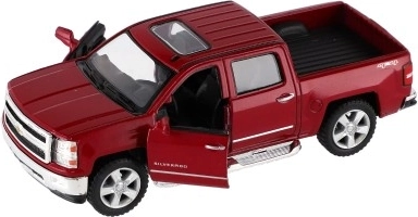 Ciesz się szczegółową repliką kultowego pick-upa CHEVROLET Silverado 2014. Metalowa karoseria z plastikowymi dodatkami, precyzyjny lakier i wierne proporcje ucieszą małych kierowców i kolekcjonerów. Samochodzik ma otwierane drzwi, dzięki czemu można obejrzeć dopracowane wnętrze.