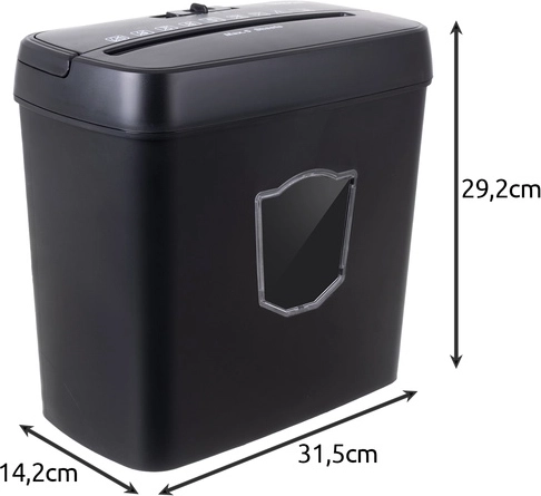 Niszczarka została zaprojektowana z myślą o łatwym przenoszeniu i obsłudze. Zawiera przezroczyste okienko do kontroli pozostałego miejsca w koszu i jest dostarczana z uchwytem dla wygodnego przenoszenia.