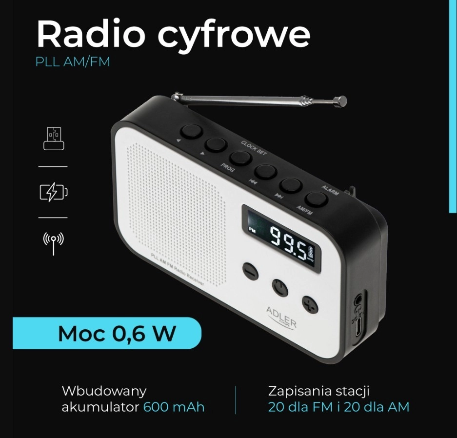 Ciesz się doskonałą jakością dźwięku dzięki cyfrowemu radiu Adler, które oferuje szeroki zakres częstotliwości: