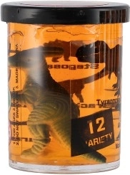 Każdy kubeczek skrywa małe dinozaury oraz nadruk z ich sylwetkami i nazwami – zabawa i nauka w jednym.