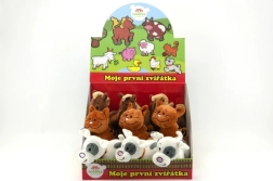 Po naciśnięciu brzuszka zwierzątko wydaje autentyczny dźwięk – dzieci łatwo poznają, jak miałczy kot, szczeka pies lub rży koń.
