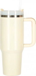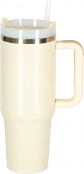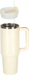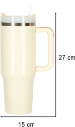 Niezawodna pokrywka zapobiega wyciekaniu, a dodatkowa słomka umożliwia łatwe picie w ruchu. Ergonomiczna rączka gwarantuje pewny chwyt.
