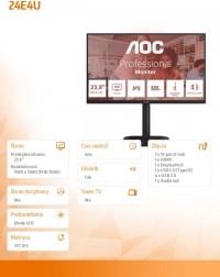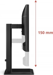 Ergonomiczna konstrukcja umożliwia regulację wysokości do 150 mm, pochylenie w zakresie od -5° do +23°, obrót o ±175° oraz funkcję pivot do obrócenia ekranu o 90°. Powłoka antyodblaskowa i redukcja niebieskiego światła zapewniają wygodne, długotrwałe użytkowanie.