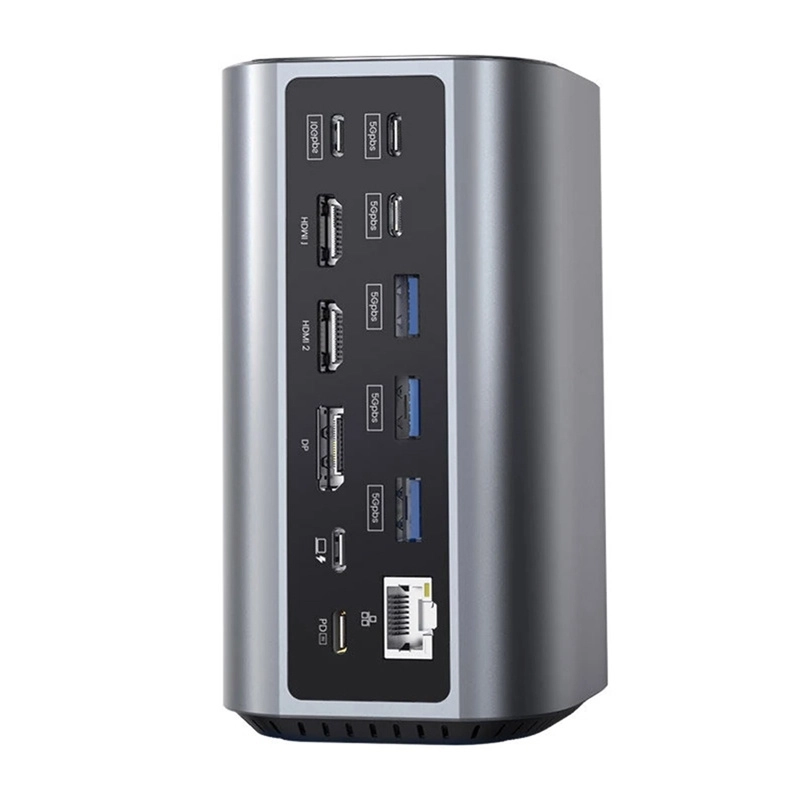 - 2 × HD, 1 × DP, 4 × USB-C, 3 × USB 3.0, 1 × USB 3.1, 1 × USB-C 3.2 Gen2 dla HOSTA, 1 × USB-C PD, 1 × RJ45, 1 × Micro SD 4.0, 1 × SD 4.0, 1 × audio 3,5 mm