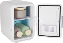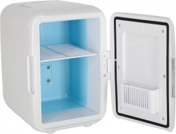 Chłodząca mini lodówka to praktyczne i kompaktowe rozwiązanie do przechowywania żywności i napojów w odpowiedniej temperaturze. Dzięki podwójnemu zasilaniu możesz podłączyć ją zarówno w samochodzie, jak i do standardowego gniazdka elektrycznego.