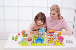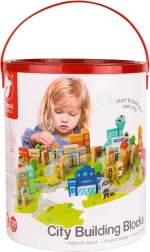 Dzięki temu zestawowi dzieci mogą budować typowe budynki miejskie, takie jak szkoła, posterunek policji, remiza strażacka, lotnisko, szpital, bank, restauracja, sklep zoologiczny i inne. Zabawka jest wykonana z naturalnych, biodegradowalnych i hipoalergicznych materiałów, co zapewnia maksymalne bezpieczeństwo.