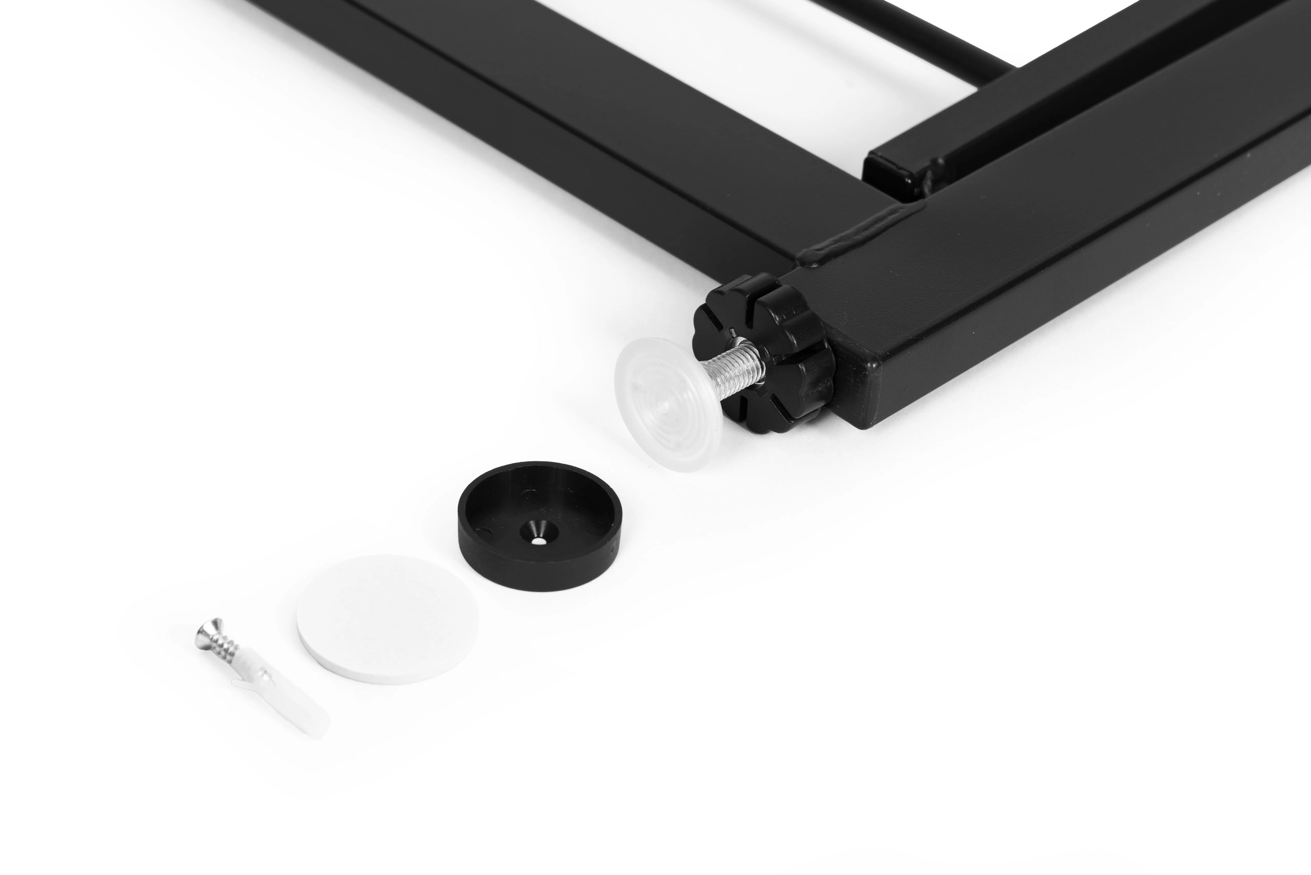 Łatwy montaż bez wiercenia dzięki 4‑punktowemu systemowi montażu ciśnieniowego, który stabilnie utrzymuje barierkę na miejscu bez uszkadzania ścian ani ościeżnic. Jeśli preferujesz montaż stały, możesz użyć dołączonych specjalnie profilowanych podkładek i śrub.