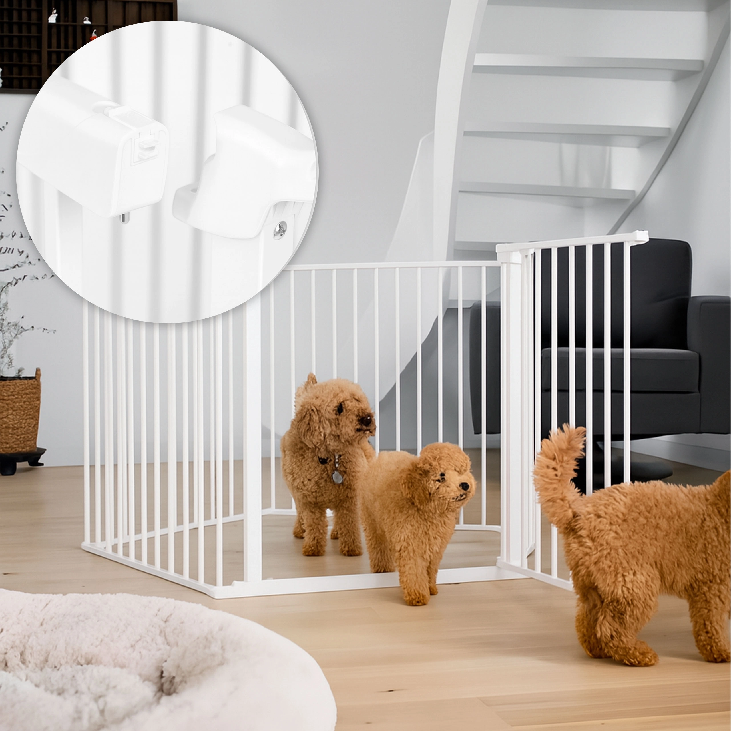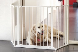 Ta bariera bezpieczeństwa doskonale sprawdzi się także dla właścicieli zwierząt domowych. Dzięki regulowanym panelom można stworzyć zamkniętą przestrzeń.