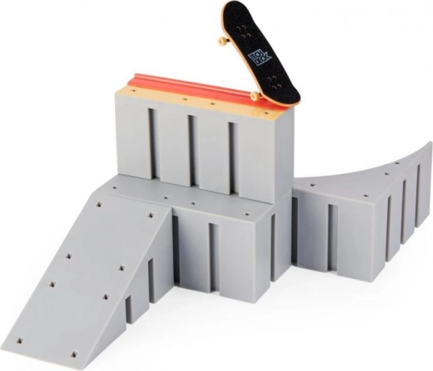 Zbuduj różne kombinacje własnego skateparku z rampami, poręczami i rozmaitymi przeszkodami. Ucz się nowych trików z ekskluzywnym fingerboardem. Zawartość zestawu: 1 fingerboard Tech Deck, 1 rampa typu bowl, 1 mała rampa, 1 rampa, 1 mały box, 1 box, 1 panel, 1 panel Tech Deck, 1 coping, 9 łączników X, 5 dużych łączników X, 9 nóżek, instrukcja. Odpowiednie od 6 lat.