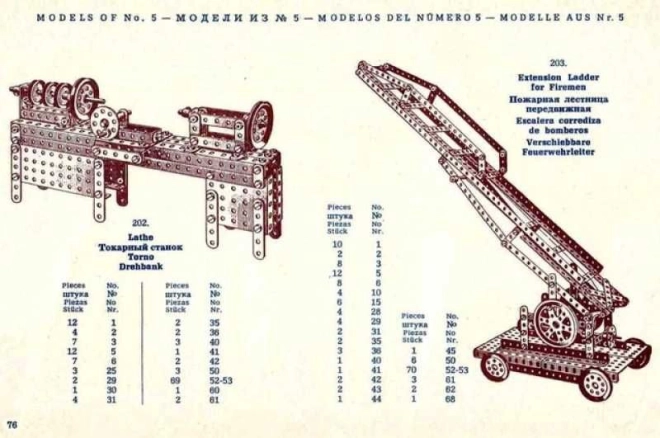 - 217 różnych modeli – od prostych mechanizmów po bardziej złożone konstrukcje.