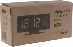 Cyfrowy budzik GreenBlue oferuje nowoczesny design, duży i czytelny wyświetlacz oraz przydatne funkcje, takie jak termometr i higrometr, idealny do każdego wnętrza.