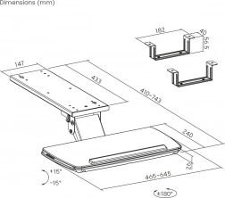 Pod względem funkcjonalności uchwyt wyposażono w wysuwany panel na mysz, który można wysunąć zarówno na prawą, jak i lewą stronę, co jest idealne dla praworęcznych i leworęcznych użytkowników. Dodatkowo umożliwia regulację nachylenia klawiatury o 15 stopni, dzięki czemu użytkownik może dostosować kąt pracy, co zmniejsza napięcie w nadgarstkach i przedramionach.