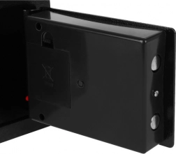 Dla wyższego poziomu bezpieczeństwa sejf wyposażono w sygnalizację dźwiękową i świetlną oraz automatyczną blokadę po trzech błędnych próbach. Zasilanie zapewniają powszechnie dostępne baterie AA, montaż jest prosty, a w zestawie znajdziesz akcesoria montażowe.