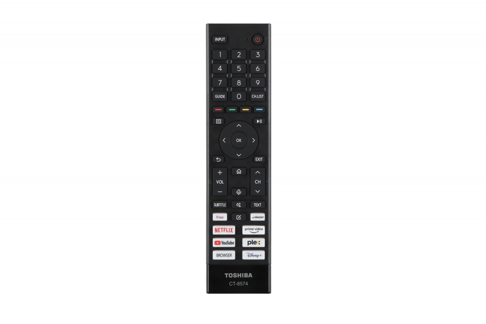 Pilot TOSHIBA z dedykowanymi przyciskami do Netflix, YouTube i Disney+ zapewnia natychmiastowy dostęp do ulubionych treści.