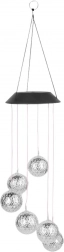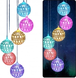 Ta lampa składa się z sześciu ażurowych kul zawieszonych na cienkich linkach, które delikatnie świecą i odbijają światło wbudowanych diod LED RGB. Dzięki zasilaniu solarnemu nie są potrzebne żadne kable ani baterie – to ekologiczne i wygodne rozwiązanie. Wbudowany czujnik zmierzchu automatycznie włącza światło, gdy zapada ciemność.