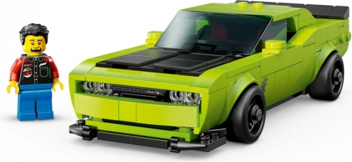 Rozszerz swoją kolekcję aut wyścigowych o legendarny DODGE CHALLENGER SRT HELLCAT w wydaniu LEGO Speed Champions. Model z 390 elementów wiernie oddaje proporcje i agresywny wygląd pierwowzoru – od długiej maski z wlotem aż po typowy przedni grill i podwójny wydech. W zestawie znajduje się również minifigurka kierowcy z kaskiem i autentycznym strojem DODGE.