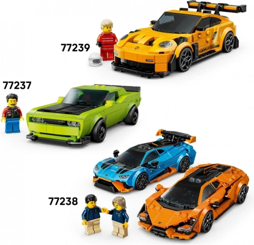 Posadź minifigurkę za kierownicą i przeżyj dynamiczne wyścigowe historie z realistyczną kabiną i toczącymi się kołami.