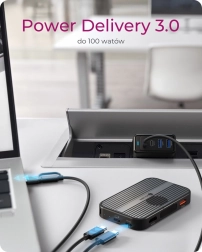Power Delivery 3.0 - Pozostawaj zasilany przez cały dzień dzięki portowi USB Type-C PD-IN, który obsługuje do 100 watów. Po prostu podłącz ładowarkę USB Type-C, aby naładować stację dokującą i podłączone urządzenia bez dodatkowych adapterów.