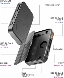 Magnetyczne mocowanie - Zawiera magnetyczną osłonę, która umożliwia bezpieczne przymocowanie do tylnej części telefonu lub innych kompatybilnych urządzeń. Dzięki temu jest wyjątkowo wygodna dla użytkowników, którzy potrzebują dodatkowej pamięci w podróży.