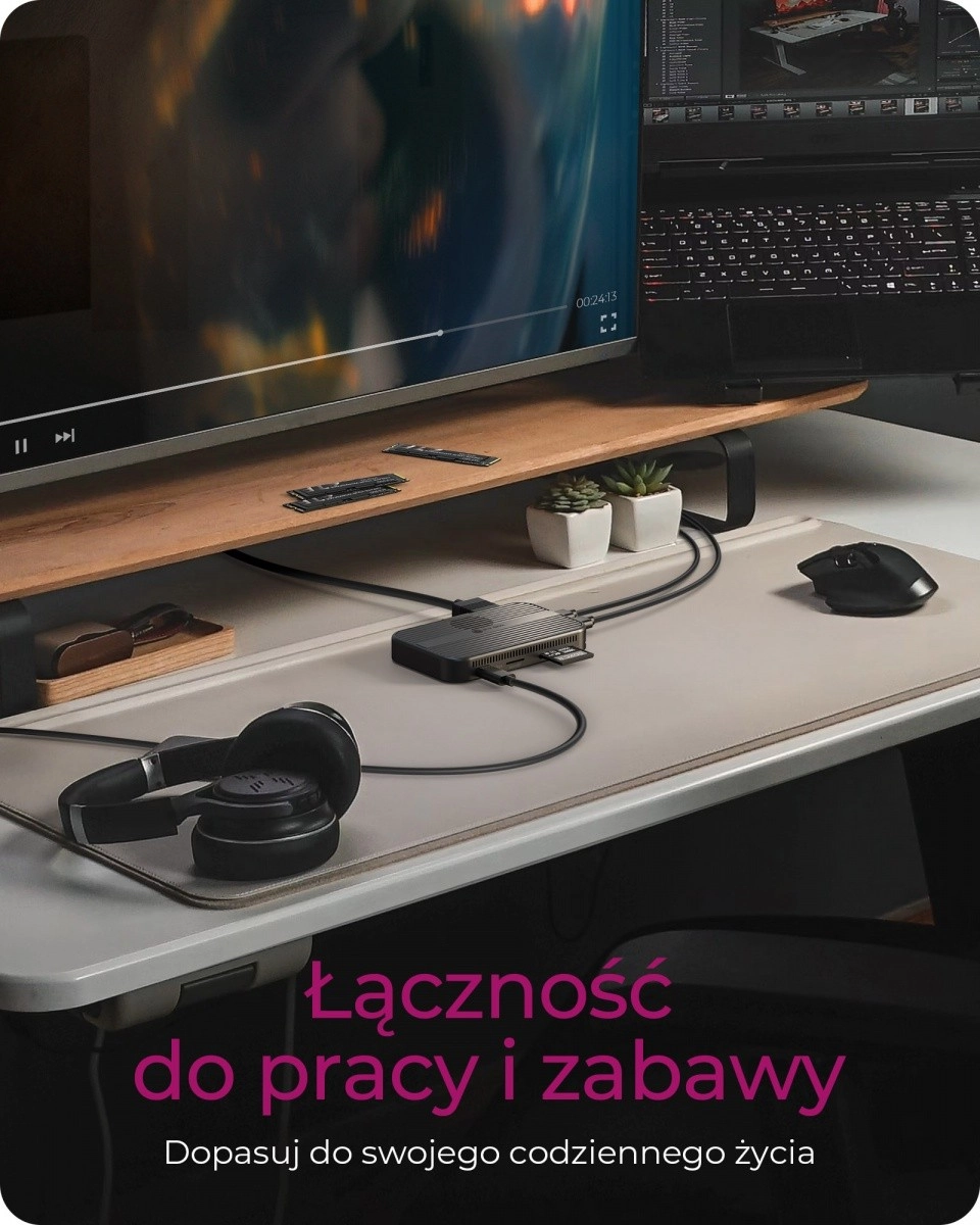 System operacyjny - Niezależnie od tego, czy pracujesz na Windows, macOS czy Linux, ta stacja pasuje do twojej istniejącej konfiguracji. Została zaprojektowana do pracy z szeroką gamą urządzeń i środowisk systemowych, co umożliwia przełączanie się między stacjami roboczymi bez obaw o kompatybilność.