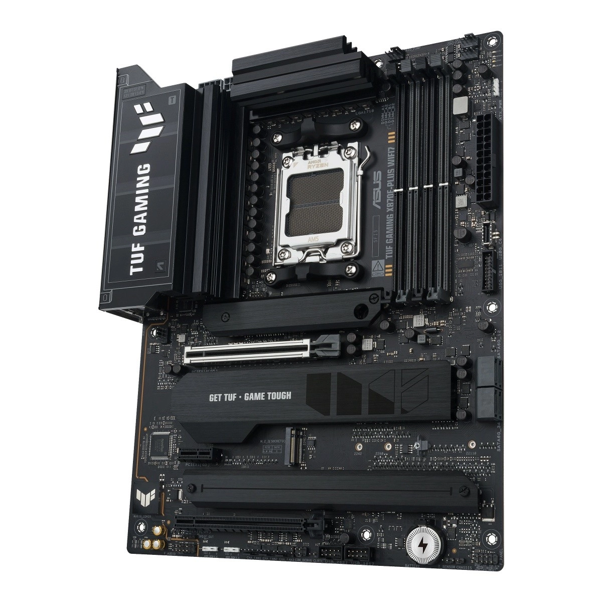 ASUS TUF Gaming X870E-PLUS WIFI7 łączy wszystkie kluczowe elementy najnowszych procesorów AMD Ryzen z funkcjami stworzonymi do gier oraz sprawdzoną wytrzymałością.