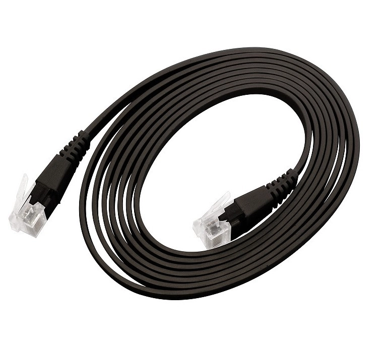 W zestawie znajduje się wysokiej jakości czarny kabel ethernetowy, który zapewnia stabilne połączenie i efektywną transmisję danych między urządzeniami.