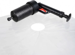 - tłok/pistolet ciśnieniowy, 4 końcówki (WC, umywalka, zlew, odpływ), folia ochronna z otworem do WC