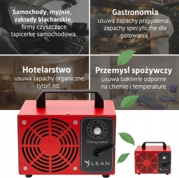 Profesjonalny generator ozonu Lean o wydajności 70 000 mg/h to skuteczne urządzenie do dezynfekcji i oczyszczania powietrza w domach, biurach, samochodach, hotelach i innych przestrzeniach, oferujące bezpieczny i naturalny sposób usuwania bakterii, wirusów, pleśni, grzybów i nieprzyjemnych zapachów.