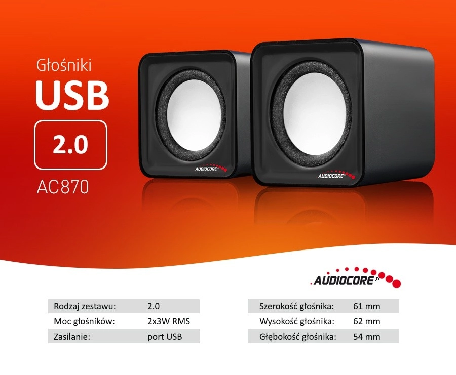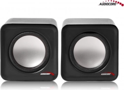 Ciesz się ulubioną muzyką, filmami i grami z kompaktowymi głośnikami 2.0 Audiocore. Nowoczesne przetworniki zapewniają czyste i przyjemne stereo, które nie zajmuje dużo miejsca i idealnie uzupełni Twoje biurko z monitorem LCD.