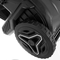Pojemny worek zbierający oszczędza czas. Wygodna rączka z miękkim uchwytem oraz duże koła ułatwiają pchanie i manewrowanie.