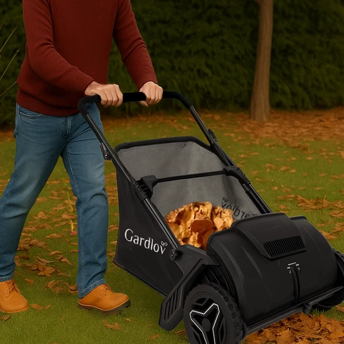 Ręczny zamiatacz GARDLOV to niezawodne i ekologiczne rozwiązanie do szybkiego sprzątania ogrodu bez kabli, baterii i paliwa. Cicha praca i bezobsługowy mechanizm czynią go idealnym narzędziem do codziennego użytku przez cały sezon. Obrotowa szczotka skutecznie gromadzi liście i skoszoną trawę bezpośrednio do dużego kosza o pojemności 100 l.