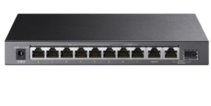 Kompaktowy przełącznik sieciowy z 9× RJ45 10/100/1000 Mb/s i 1× combo SFP/RJ45 1 Gb/s oferuje niezawodne zasilanie przez PoE. Zapewnia 2 porty PoE++ oraz 6 portów PoE+ zgodnych z IEEE 802.3af/at/bt, do 60 W na port PoE++, 30 W na port PoE+ oraz łączny budżet PoE 123 W. Łatwa instalacja Plug and Play, tryb Extend z zasięgiem do 250 m oraz tryb izolacji dla wyższego bezpieczeństwa sieci.